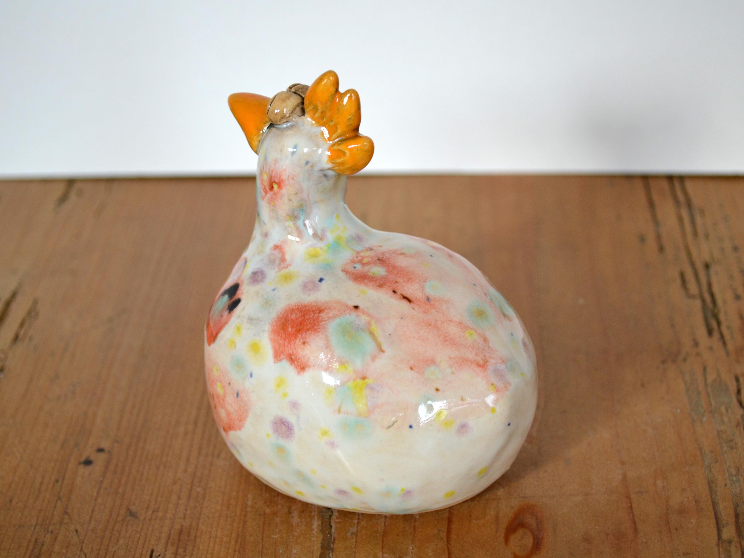 Cute ceramic chicken for garden, flowerbed or balcony.