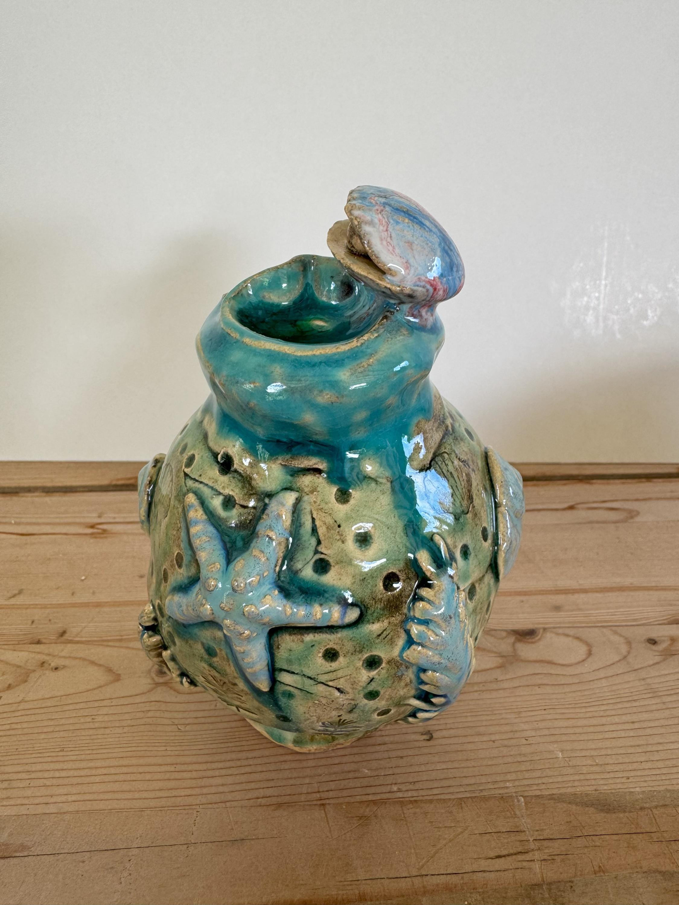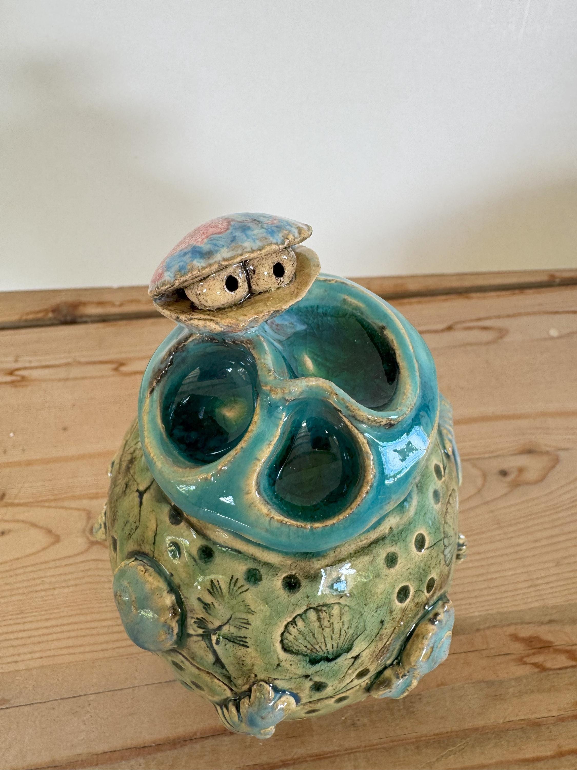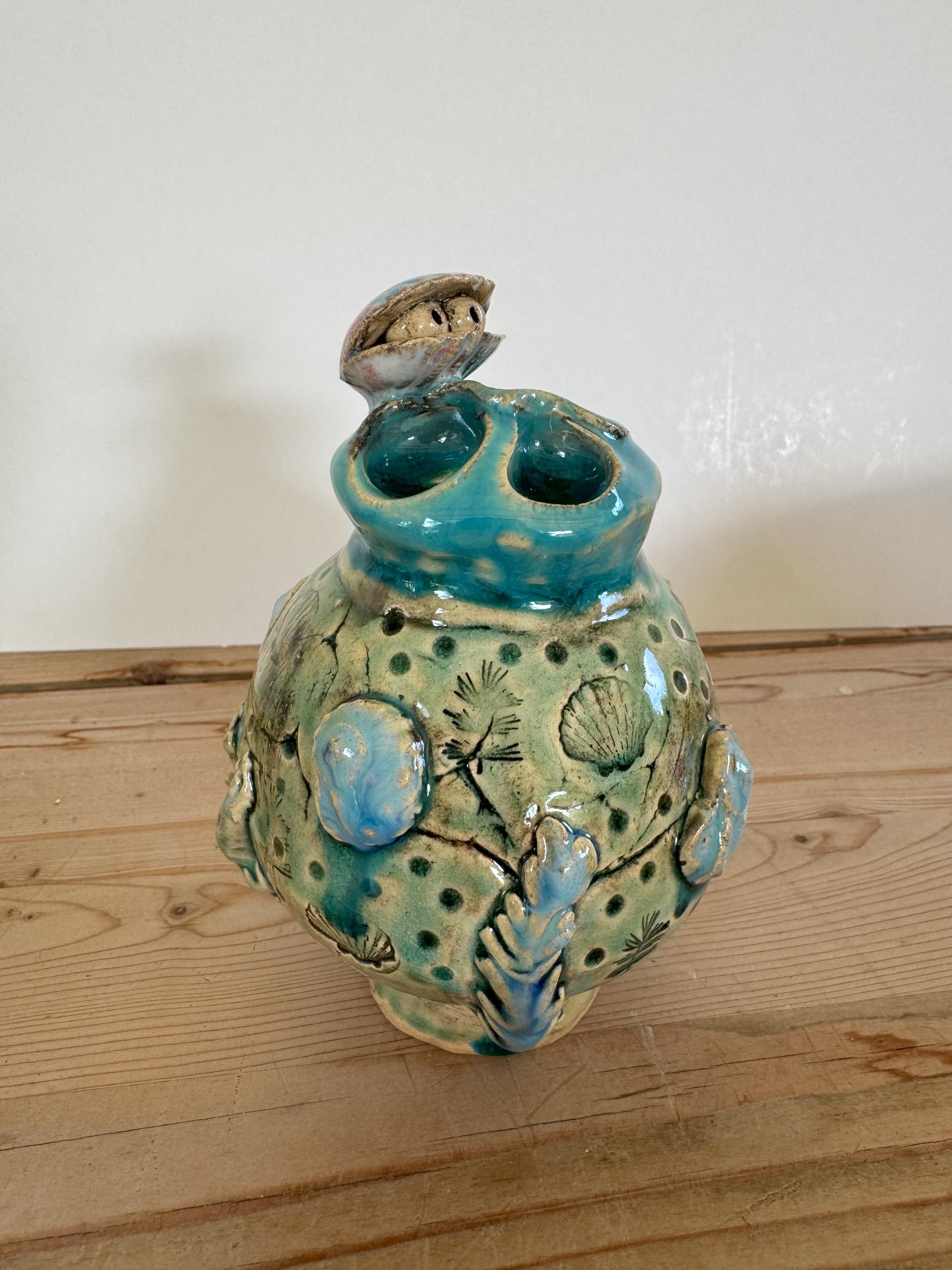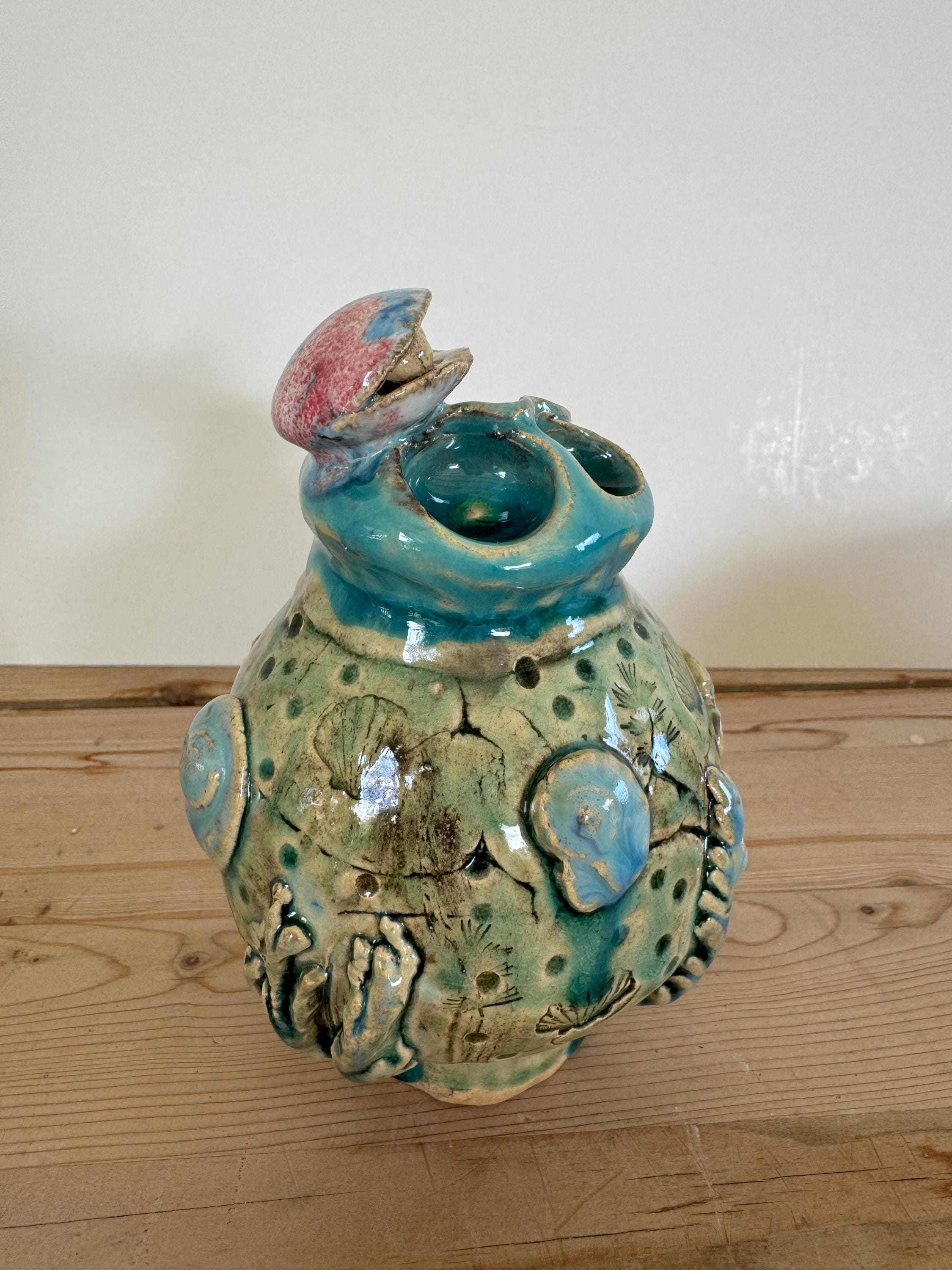 A freely sculpted, unique piece. Irregularities in shape and glaze do not indicate a lack of quality, but are a reflection of the craftsmanship.
