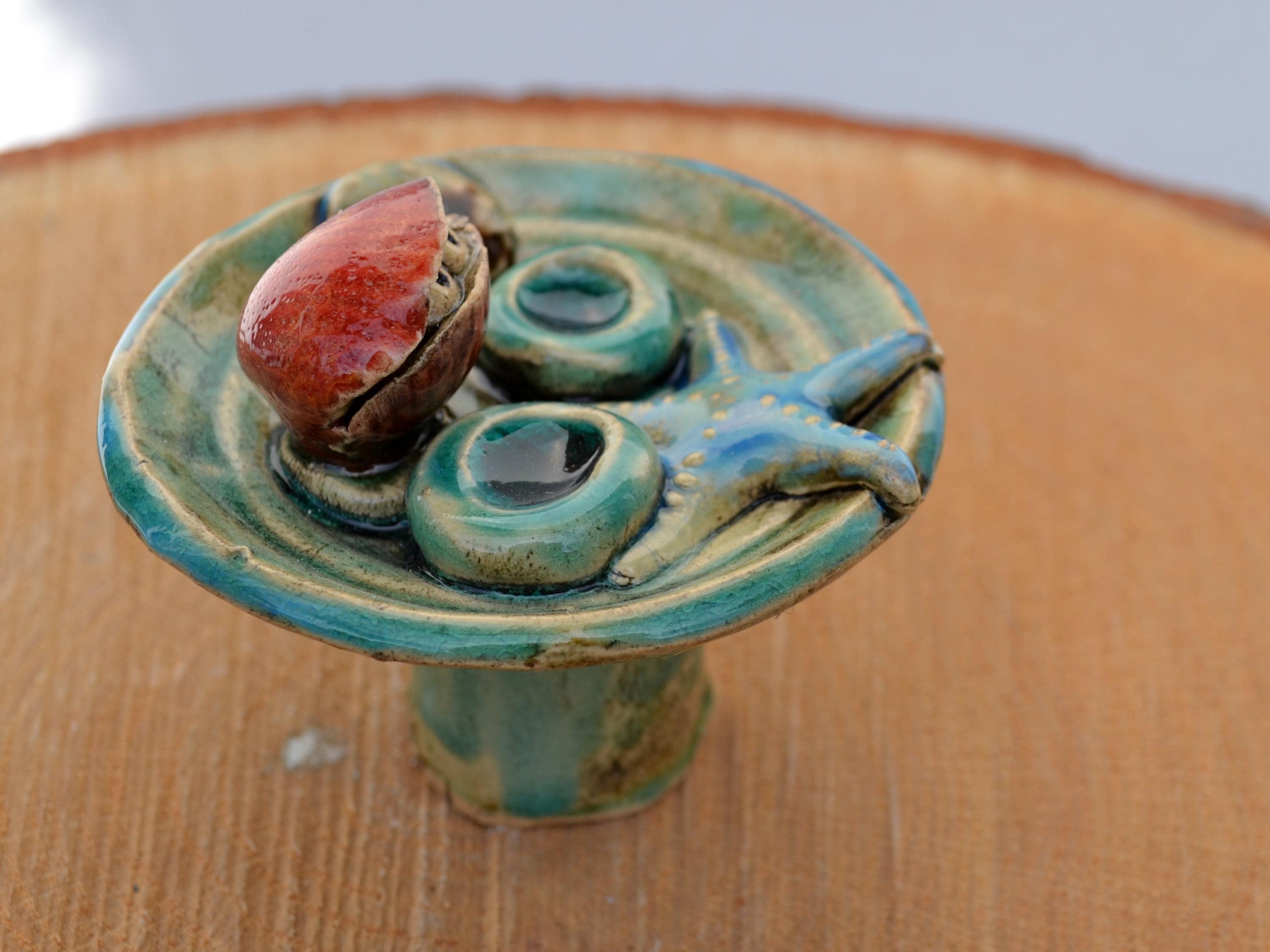 Ceramic insect waterer "Seashells by the Sea" for sticking in place.