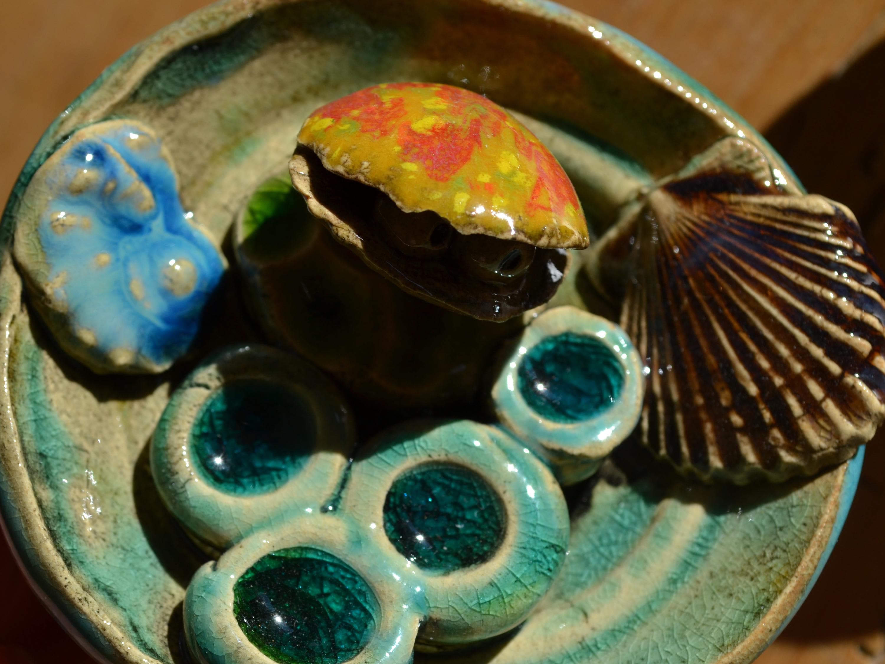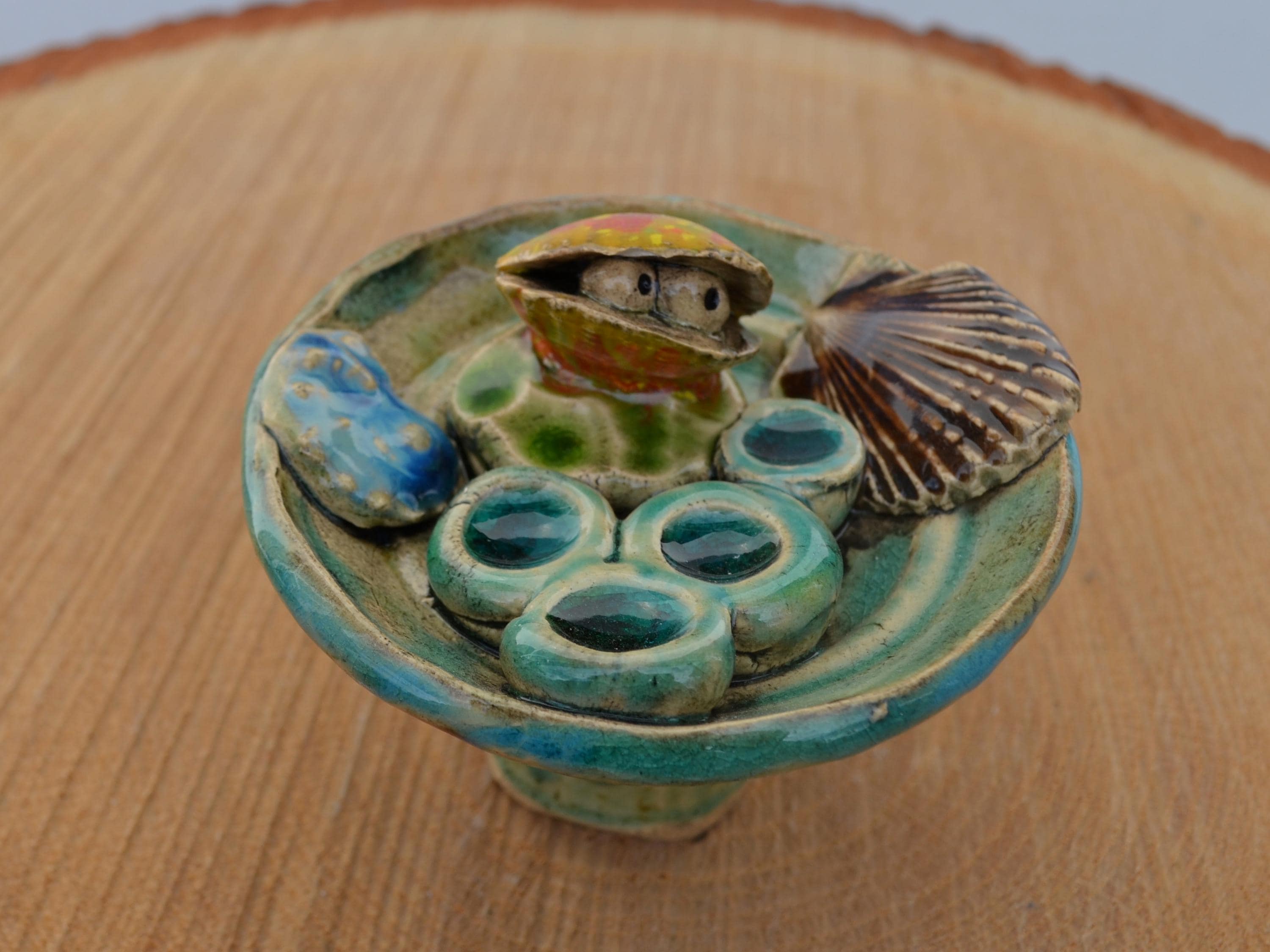 Ceramic insect waterer "Seashells by the Sea" for sticking in place.
